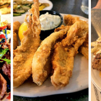 deep-fried shrimp, clams, perch, pecan tilapia, and a crab cake